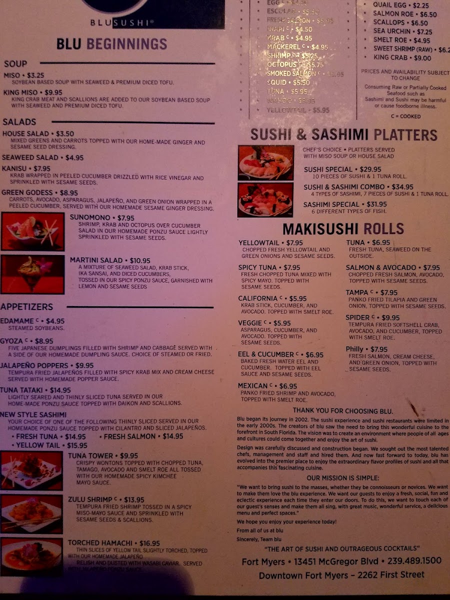 Welcome to Blu Sushi, a vibrant culinary gem located in Fort Myers, where fresh and innovative sushi delights await. At Blu Sushi, the menu blends classic techniques with a modern twist, featuring an array of expertly crafted sushi rolls, sashimi, and more.